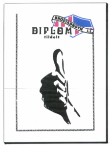 Et diplom blei trykt opp i noen eksemplarer (vedlegg 2). I den ble logoen utforma lokalt. Jeg mener det var et linoltrykk som ble brukt i utforminga. Den ble imidlertid ikke ”strammet opp” på trykkeriet, og ble ikke særlig bra.